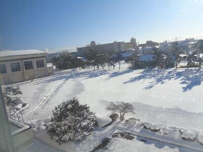 上の写真左は3階から前庭を撮影。校舎からの落雪防止のため、用務員さんが中に通路を作ってくれました。