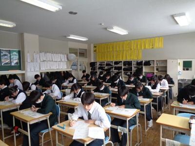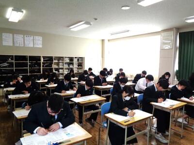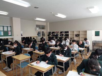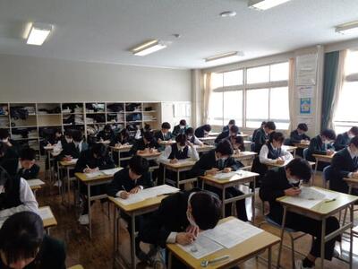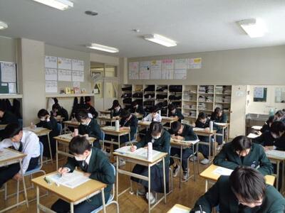 3年生は中学校での授業が残り約1か月となりました。入試の終了した人とこれからの人が混在する時期ですが、どの生徒も、授業に真剣に取り組んでいました。「立派!」