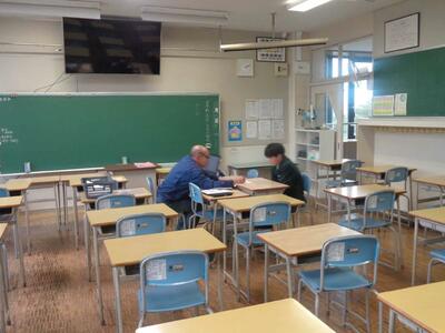 (今日の放課後、3年生のある生徒が遅くまで先生に数学の問題の解き方を質問していました。目標に向けて頑張る受験生、応援します)