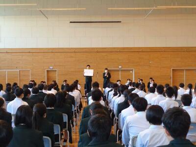 本日5、6時間目、函館商工会議所の永澤様を講師にお迎えして、1年生対象に「職業講話」を実施し「働くこと」について、様々な視点からお話をしていただきました。
