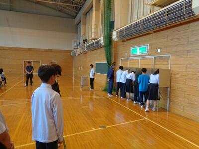 本日6時間目、体育館で生徒会役員選挙の立会演説会と投票が行われました。7名の立候補者と責任者が堂々と演説や応援演説を行いました。