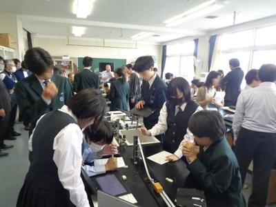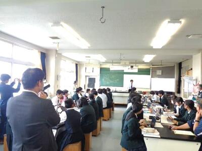 本日5時間目、校内特設課題授業研として、3の1の理科の授業公開が行われました。全教員での参観のほか、授業後に渡島教育局と函館市教委の方から助言をいただきました。