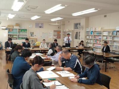 理科の「仕事と力学的エネルギー」の分野で、まず予想し、その後実験で検証するという内容でした。特に班での実験で協力しあいながら課題に向かう姿はとてもすばらしかった、授業の雰囲気が大変よいですね、との声が多くの先生方や助言者の方から上がっていました。