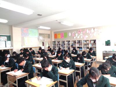 3年生総合Cテスト 投稿: 港中HP担当 (11/06) 今日は、3年生の総合Cテストです。今回で総合テストも最後になります。今日も真剣に問題用紙に向かっていました。最後までねばり強く。健闘を祈ります。 -