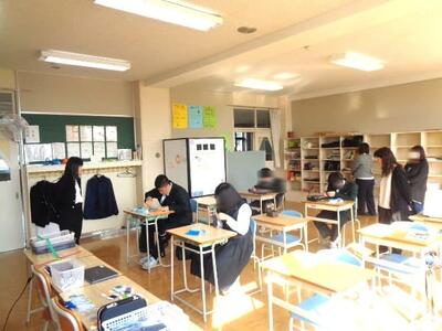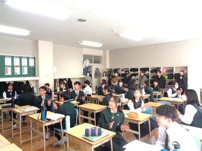午後は、港小学校の校長先生や先生方にも来ていただきました。小学校時代の担任の先生がいて、生徒は喜んでいました!写真は上から、3の1保体、3の2数学、はまなす学級作業学習です。