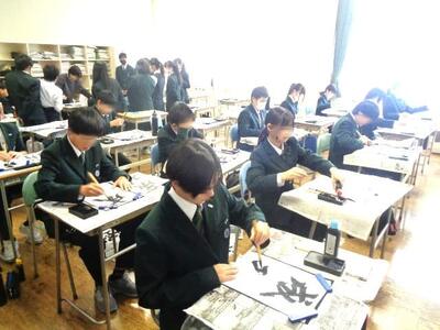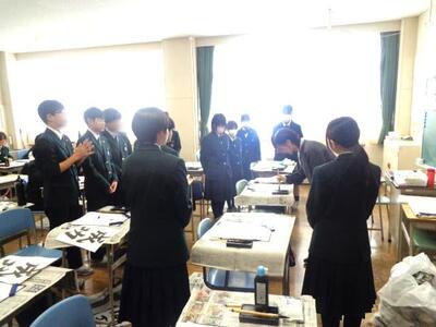 みんなとても真剣に半紙に向かっていました。集中力が感じられる授業でした。はねやはらいなど、練習を重ねるごとに上達がわかります。