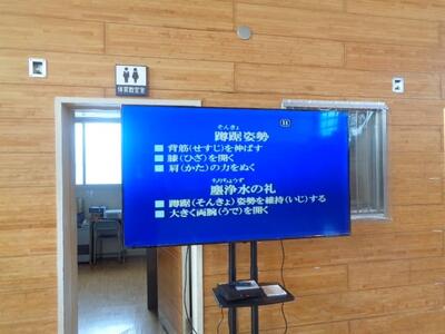 内容は「武道」です。私が体育館に入っていくと、相撲の蹲踞(そんきょ)の姿勢の真っ最中でした。