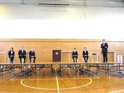 その後の離任式では、本校を離れる6名の職員から挨拶があり、生徒会代表の生徒からお別れの言葉がありました。