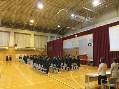 入学式 投稿: 港中HP担当 (15:14) 素晴らしい天気にも恵まれながら、入学式が無事に挙行されました。 56名を迎え入れ、全校生徒210名で港中学校はスタートします。 早く学校生活に慣れて、楽しい時間を共に過ごしましょう。 -