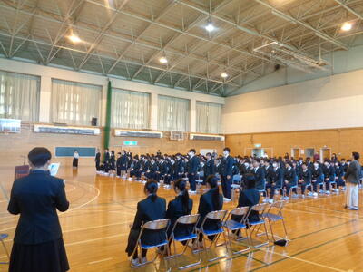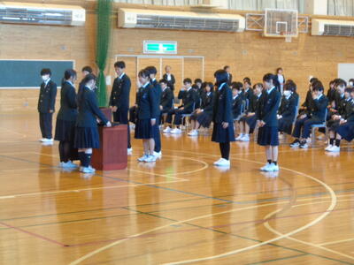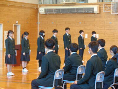 認証式が行われました! 投稿: 港中HP担当 (13:08) 前期の評議・専門委員が各クラス決定し、生徒会総務から氏名が一人ひとり呼ばれました。 決意が感じられる返事が体育館に響き渡り、代表生徒に認証状が手渡されました。 学校・学年・学級の中心となるメンバーたちです。これから頑張ってほしいですね。 -